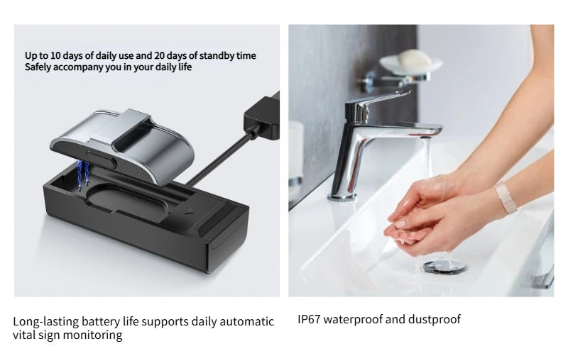 * Automatic continuous vital signs monitoring, bringing you a new healthy life experience. 7 * 24 automatic blood oxygen saturation, heart rate, heart rate variability, pressure, blood pressure, body temperature monitoring, take care of your body, and bring you a new healthy life experience.