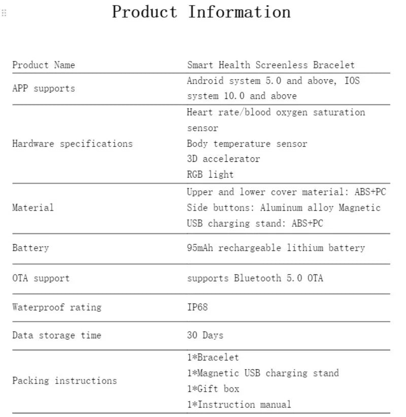 Function: Passometer,fitness tracker,sleep tracker,Blood Pressure,Blood Oxygen,Heart Rate Tracker,Activity Tracker