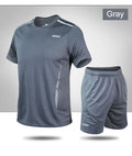 CHRLCK Men's Quick Drying Running Sets Breathable Hiking Fishing T-Shirt Short Soft Elasticity Gym Fitness Suits Outdoor Sports