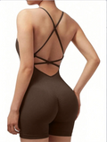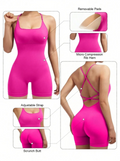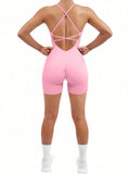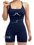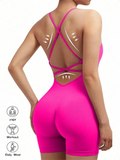 Sexy Fitness Jumpsuit Women Cross Adjustable Sports Playsuit Running One Piece Yoga Suit Scrunch Shorts Backless Set Romper